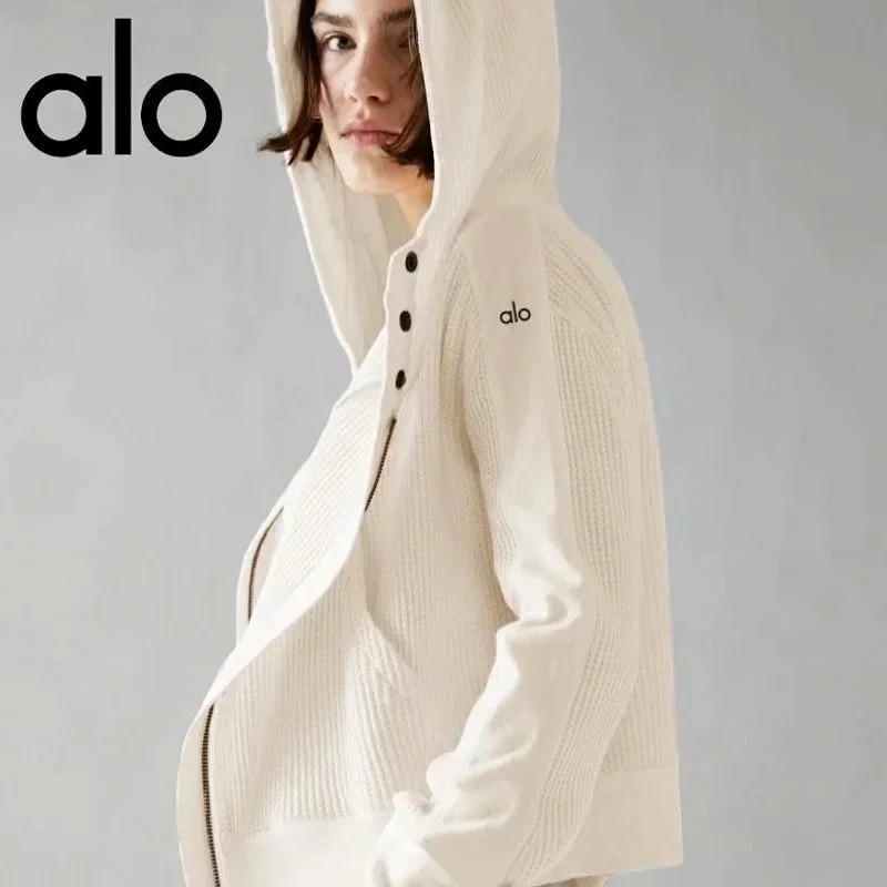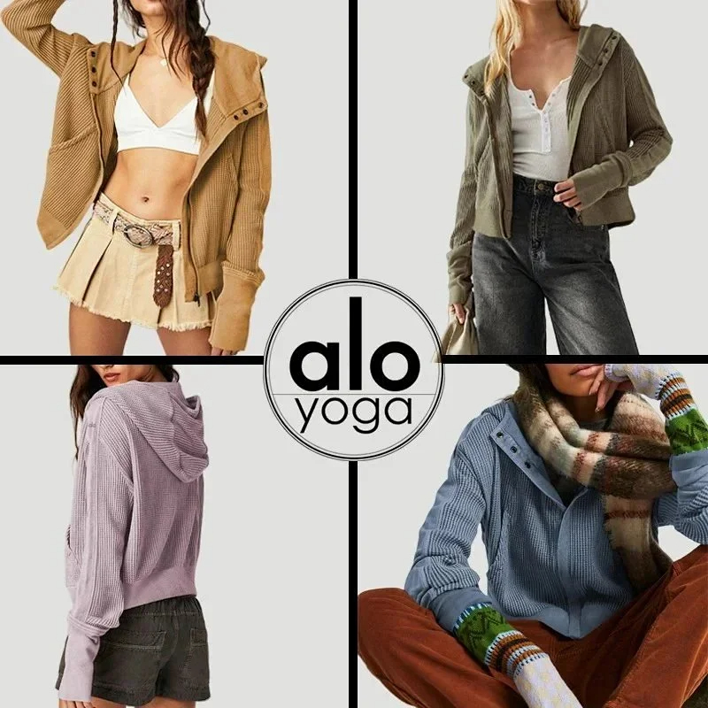 ALO Label Waffle Hooded Cardigan Sweatshirt with Zip-Up (3 styles)-2566