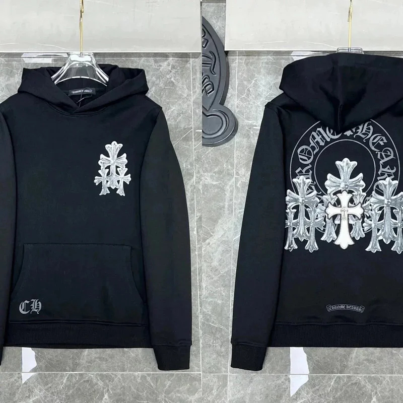 Chrome Hearts CH 2025 Colorful Cross Leather Sanskrit Hooded Sweatshirt for Casual and Versatile-2516