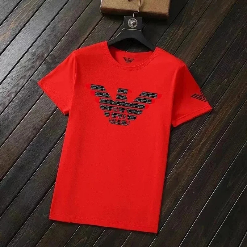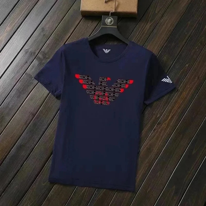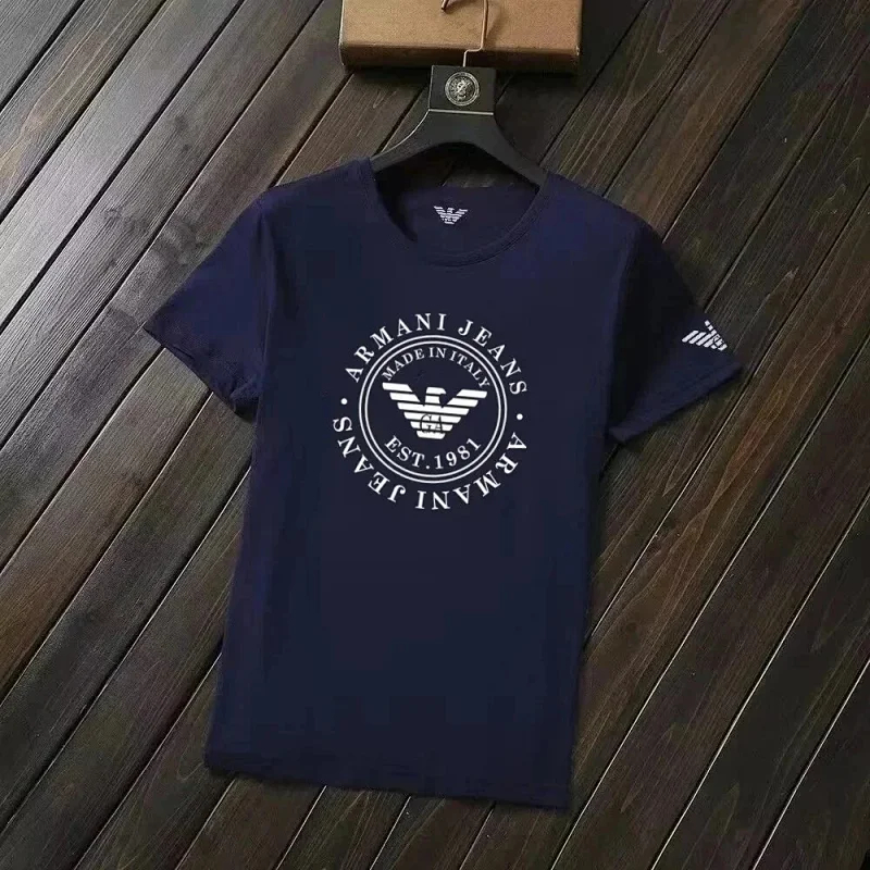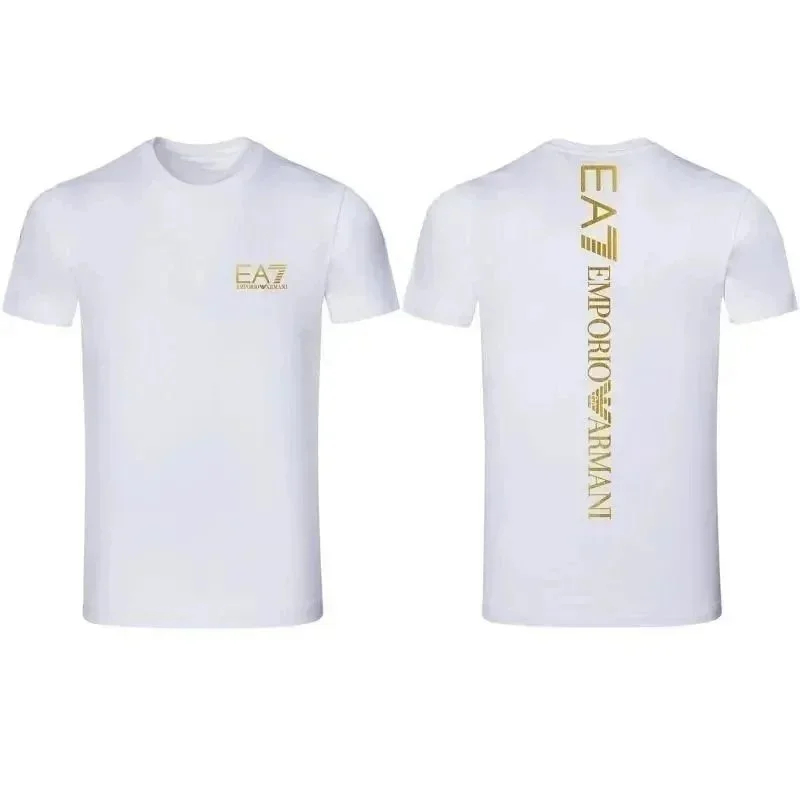 EMPORIO ARMANI EA7 Lettering Logo Solid Color Round Neck Short Sleeve T-Shirt-2831