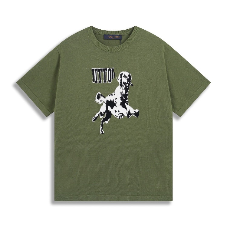 Home > Louis Vuitton LV knitted checkerboard pattern letter jacquard casual loose short-sleeved T-shirt-5308