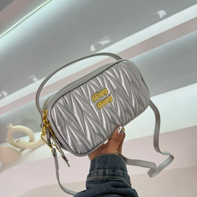 MIU MIU metal logo zip closure lambskin clutch bag-4634