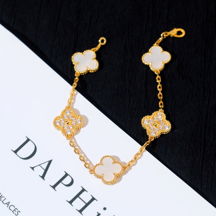 Van Cleef & Arpels classic five-flower diamond white mother-of-pearl bracelet-3781