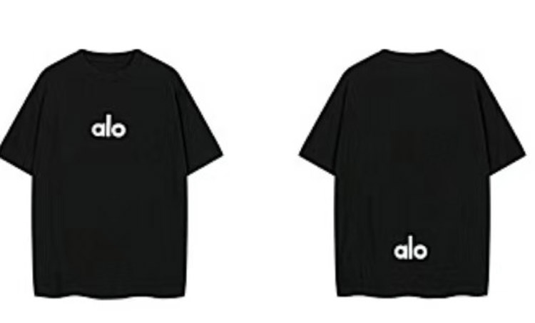 Home > ALO Foamed Letter Hot Stamped Silver Short-Sleeved Crew Neck T-Shirt-5096