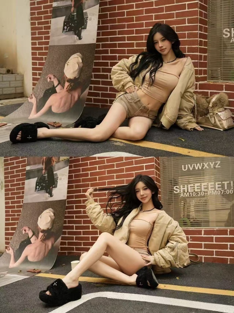 Home > SMFK Non-slip Platform Wedge Velvet Slippers-5696