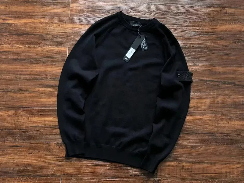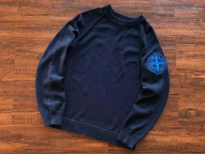 Stone Island Round Neck Badge Sweater Slim Knit Top-2119